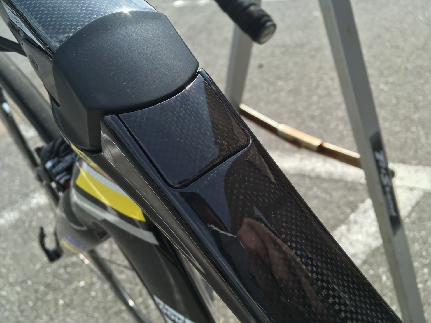 UCI規定では、ゼッケンプレートはサドルとリアホイールの間の空間に、とし書かれていないで、