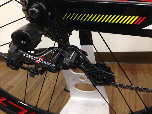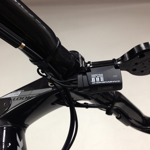 無線専用のコンポに有線のカンパニョーロEPSを組み込んであります。