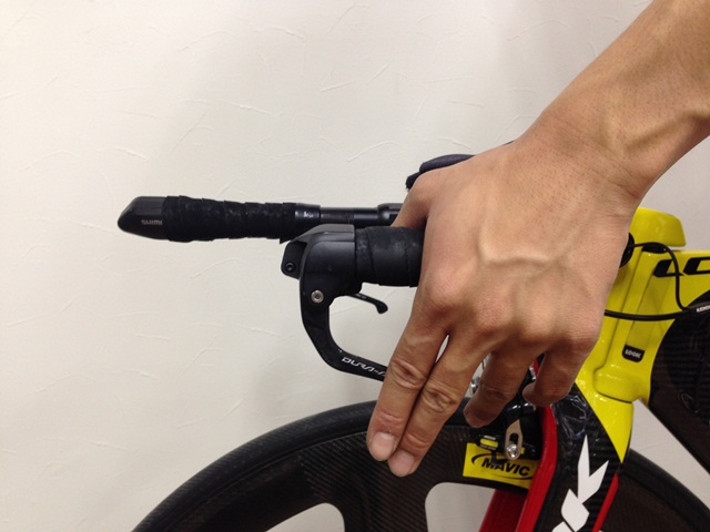タイムトライアルバイクはロードバイクよりもポジションがシビア。