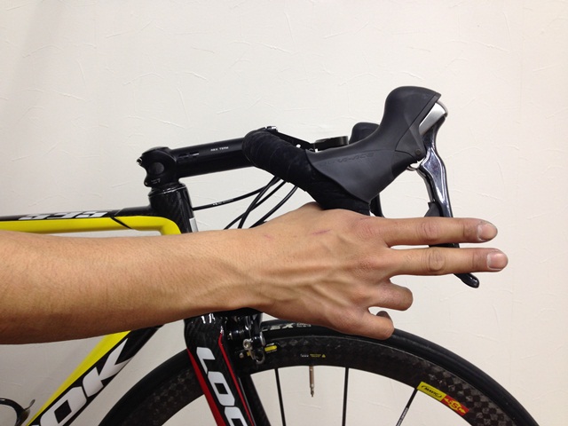 私がハンドル周りのセッティングを決める上で大事にしているのは、下ハンドルの角度、レバーの角度、そしてブラケットボディーの角度の3点。
